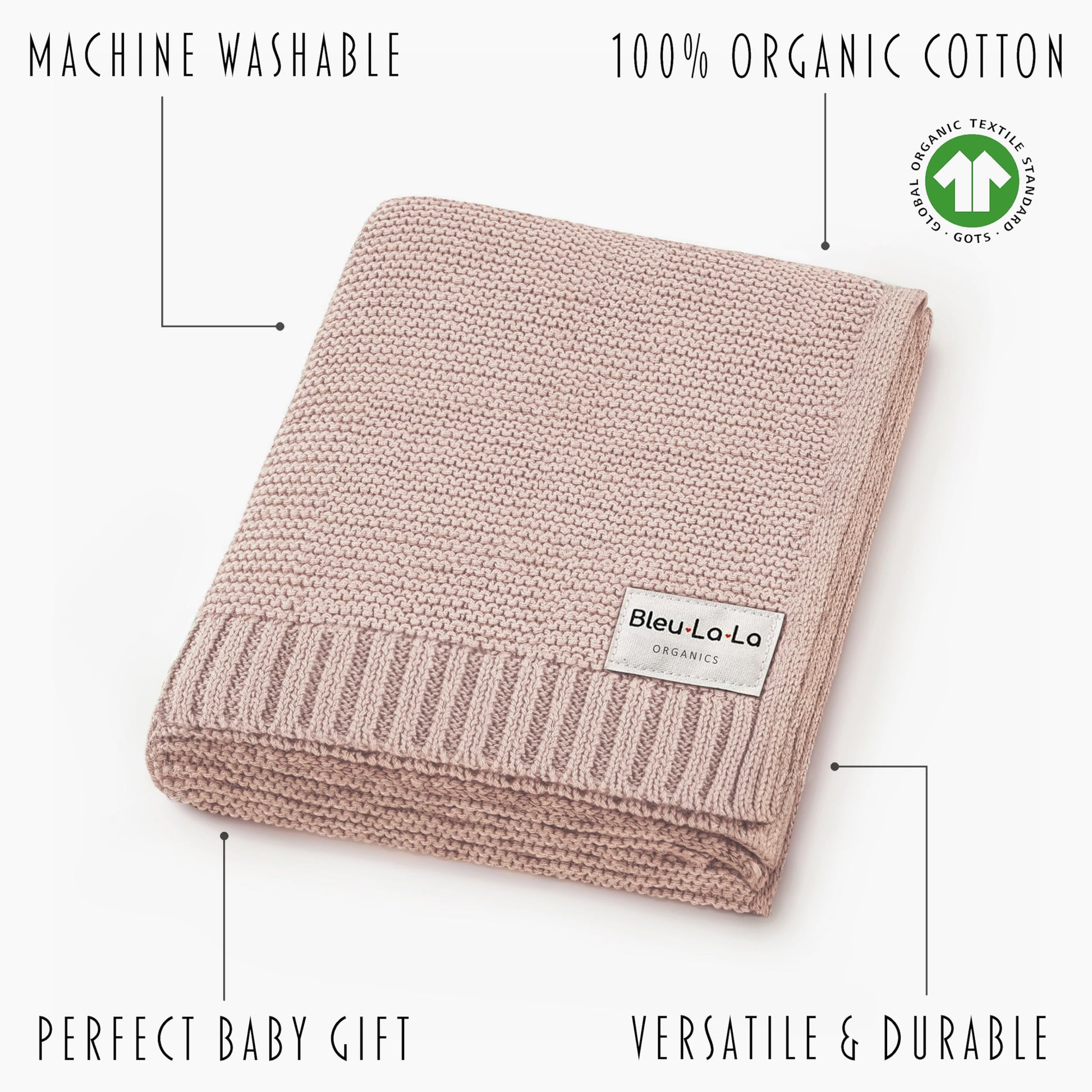 - 100% Organic Cotton: Crafted from 100% GOTS certified organic cotton fibers, our baby blanket offers the highest standard of quality and purity. The use of natural cotton ensures a tenderly soft, breathable, and gentle feel, making it perfect for even the most sensitive newborn babies' delicate skin.
